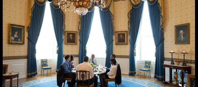 President Barack Obama hosts Education Secretary Arne Duncan and a group of teachers for lunch in the Blue Room of the White House, July 7, 2014, to discuss efforts to ensure that every student is taught by an effective educator. (Official White House Photo by Pete Souza)