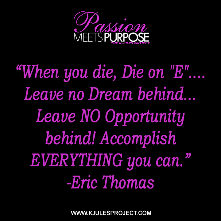 “When you die, Die on “E”…. Leave no Dream behind… Leave NO Opportunity behind! Accomplish everything you can.” -Eric Thomas