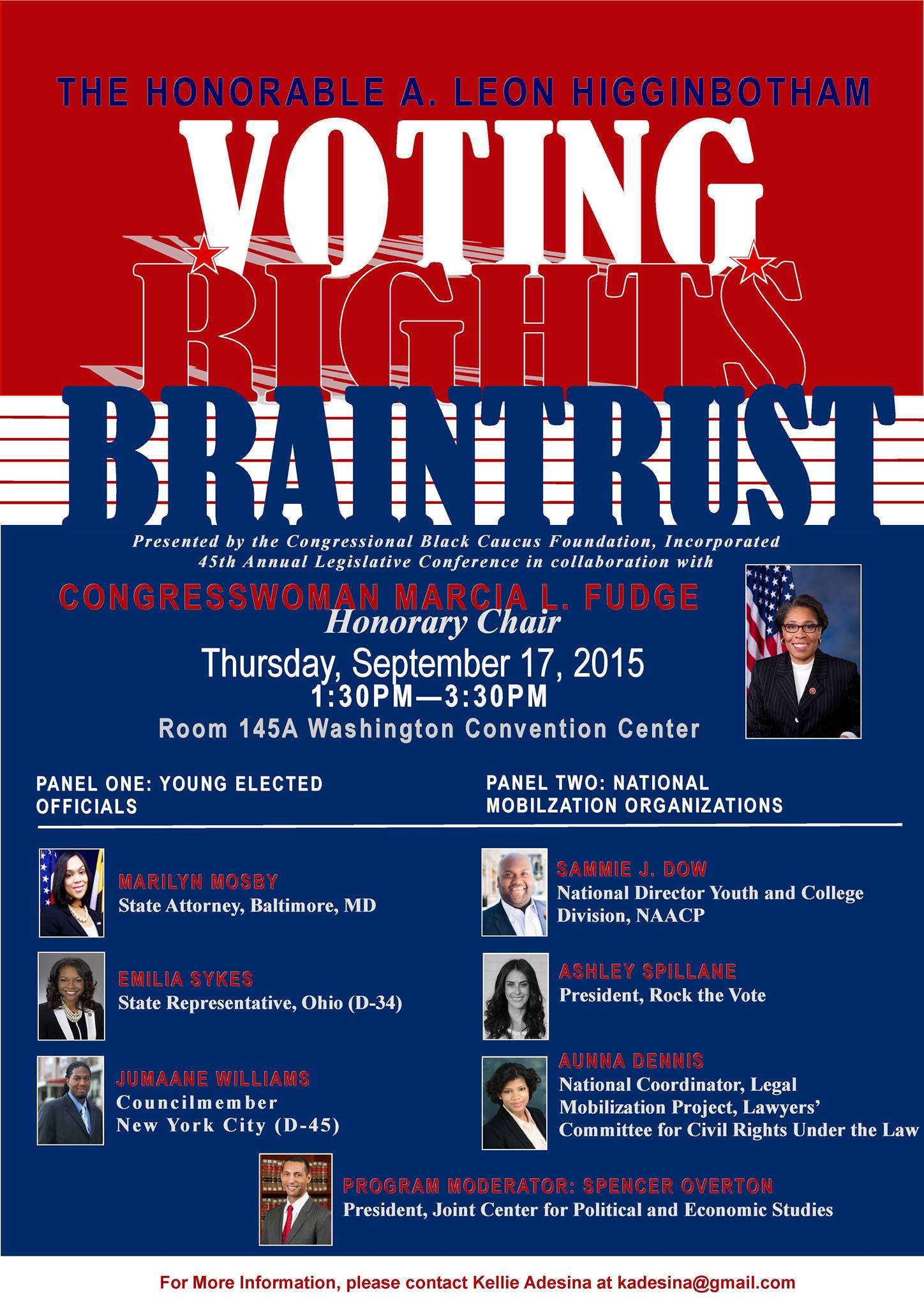 Join Honorary Host Congresswoman Marcia L. Fudge at this year’s A. Leon Higginbotham Voting Rights Braintrust during the Congressional Black Caucus Foundation’s Annual Legislative Conference. This year’s panelist will include both young elected officials and national mobilization organizations.